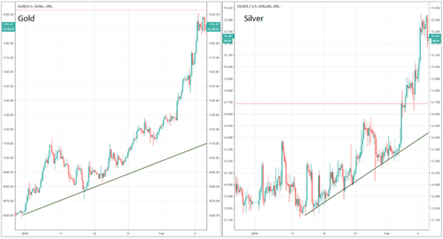 2) Определяем тренд. Видим, что и золото, и серебро тоже растут.