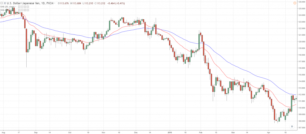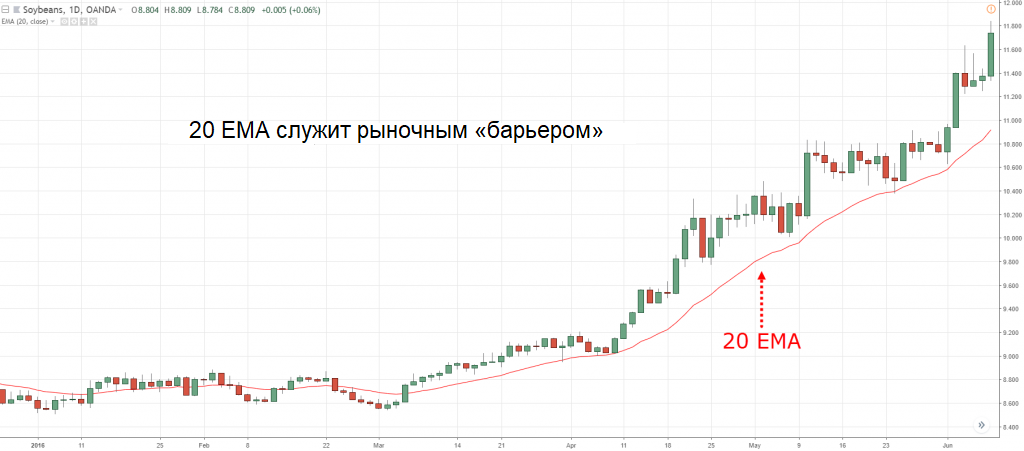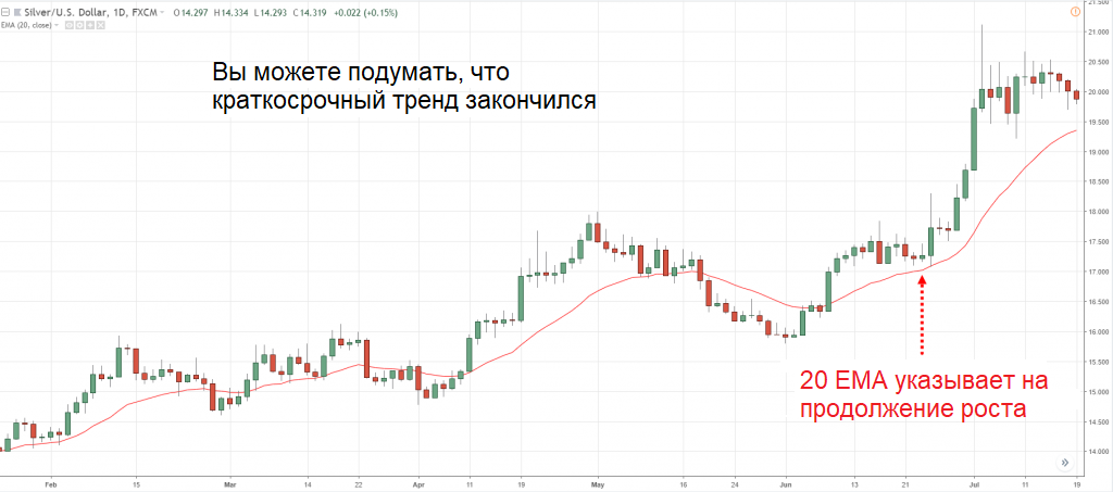 Когда цена над 20EMA, а 20 EMA указывает на продолжение роста, то вы в коротком растущем тренде (для данного периода времени).