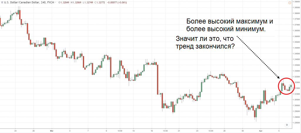 Но иногда бывает так, что вы получаете более высокое максимальное значение на падающем тренде. И означает ли это, что тренд закончился?