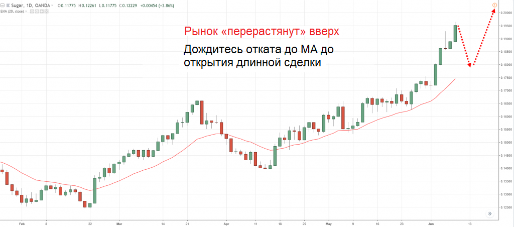 Все просто. Если рынок «растянулся», то, скорее всего, он откатится к скользящей средней.