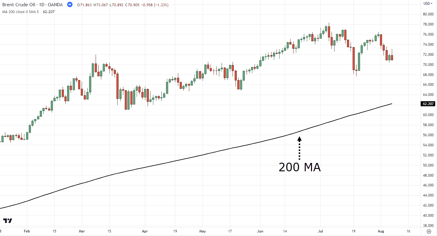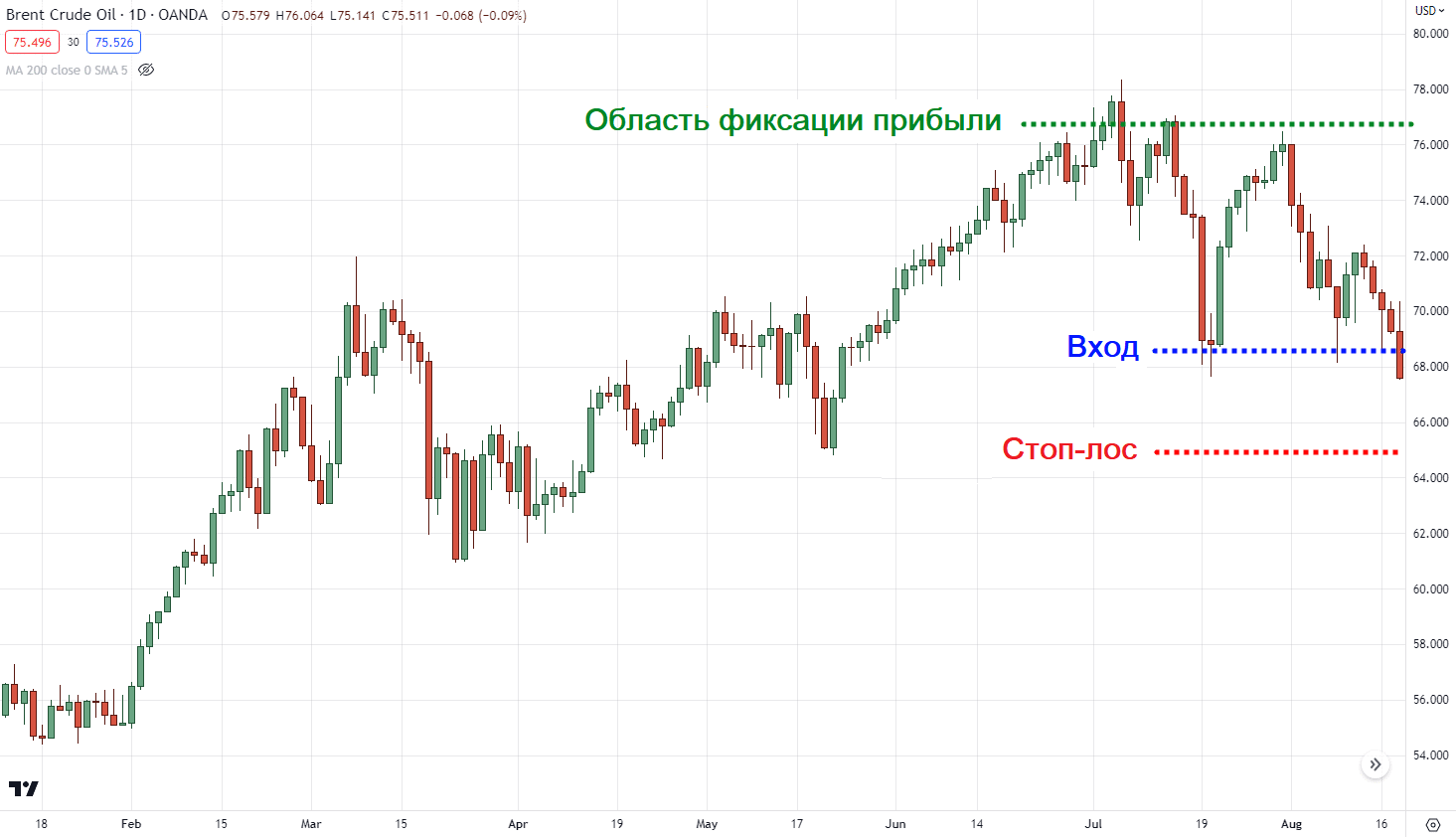 Посмотрим на примере дневного таймфрейма и нефти Brent: