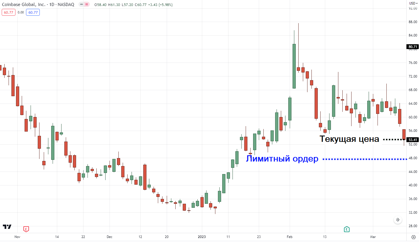 Размещение лимитного ордера символизирует, что вы хотите, чтобы цена снизилась до момента вашего входа в рынок, чтобы вы могли войти по гарантированно выгодной цене.