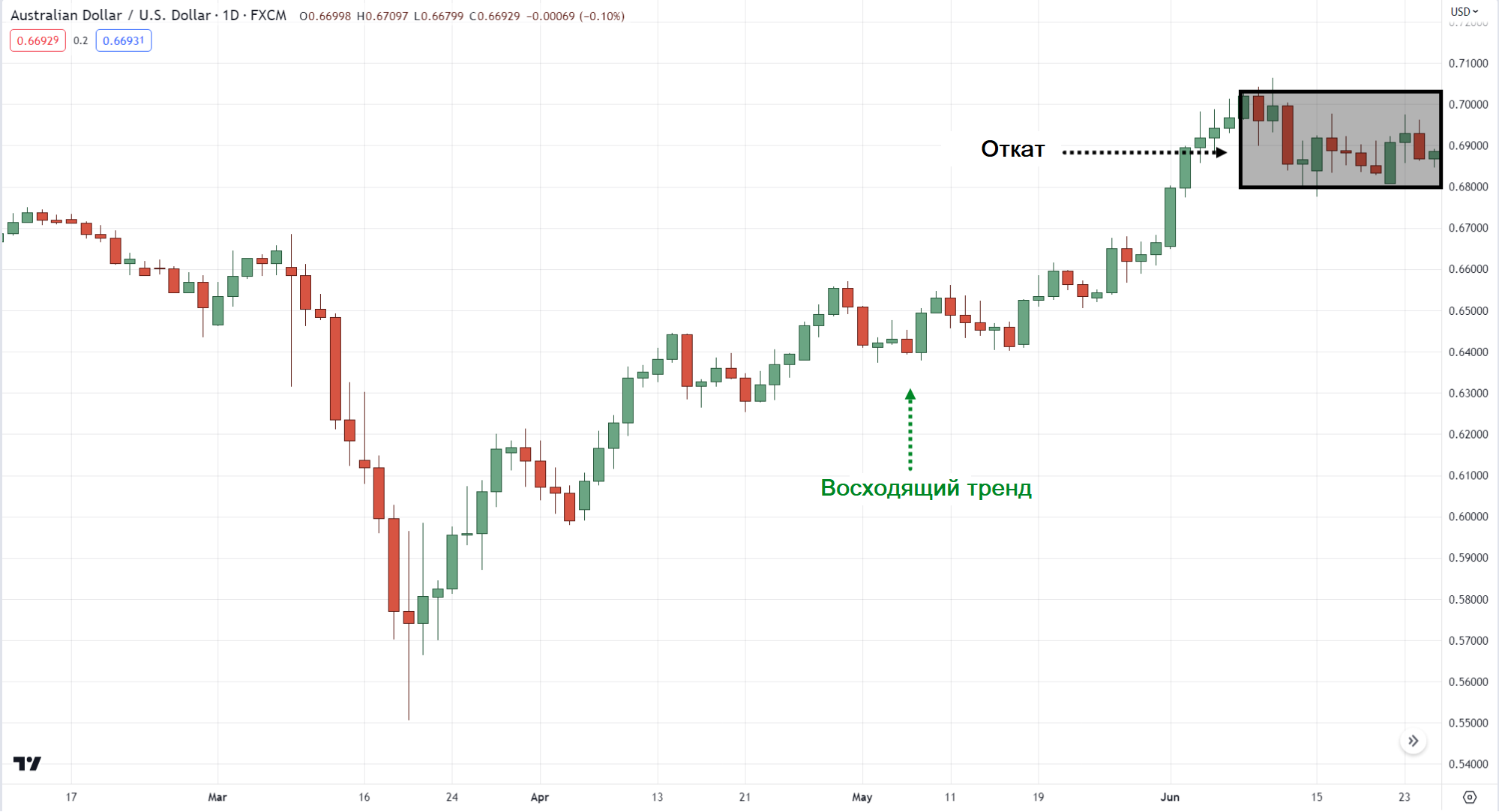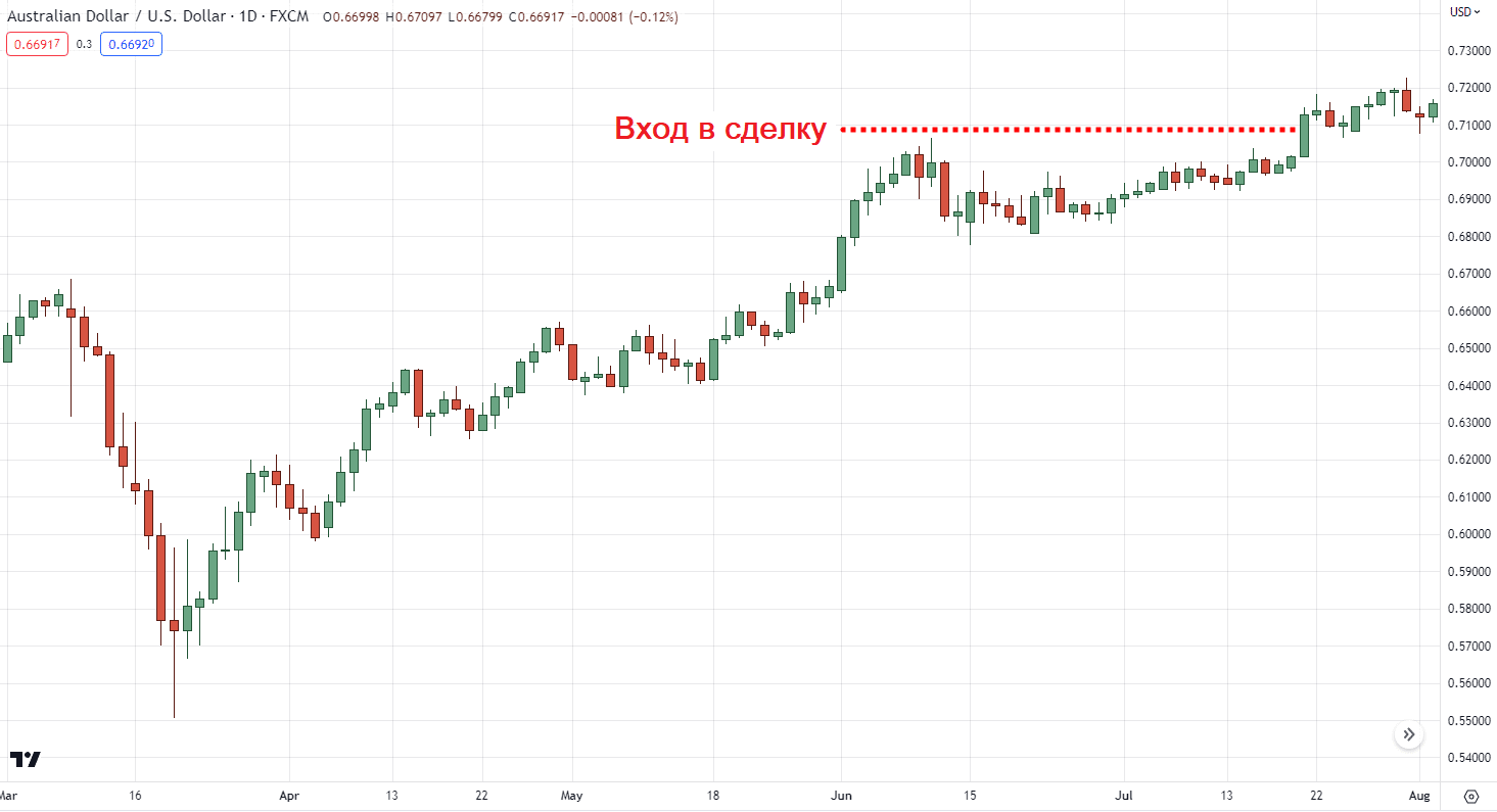 Возвращаясь к примерам с графиками… Предположим, вы видите хороший тренд на откатной позиции.