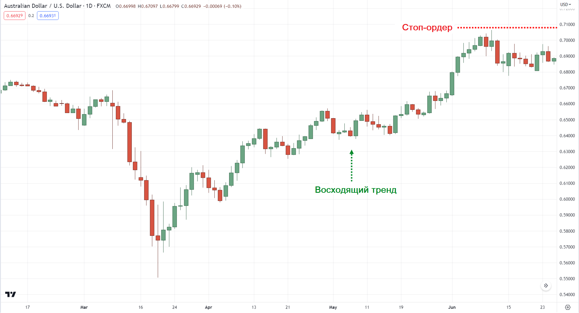 Стоп-ордер — это, когда вам нужно, чтобы цена выросла до определенной точки, и только потом вы войдете в рынок.