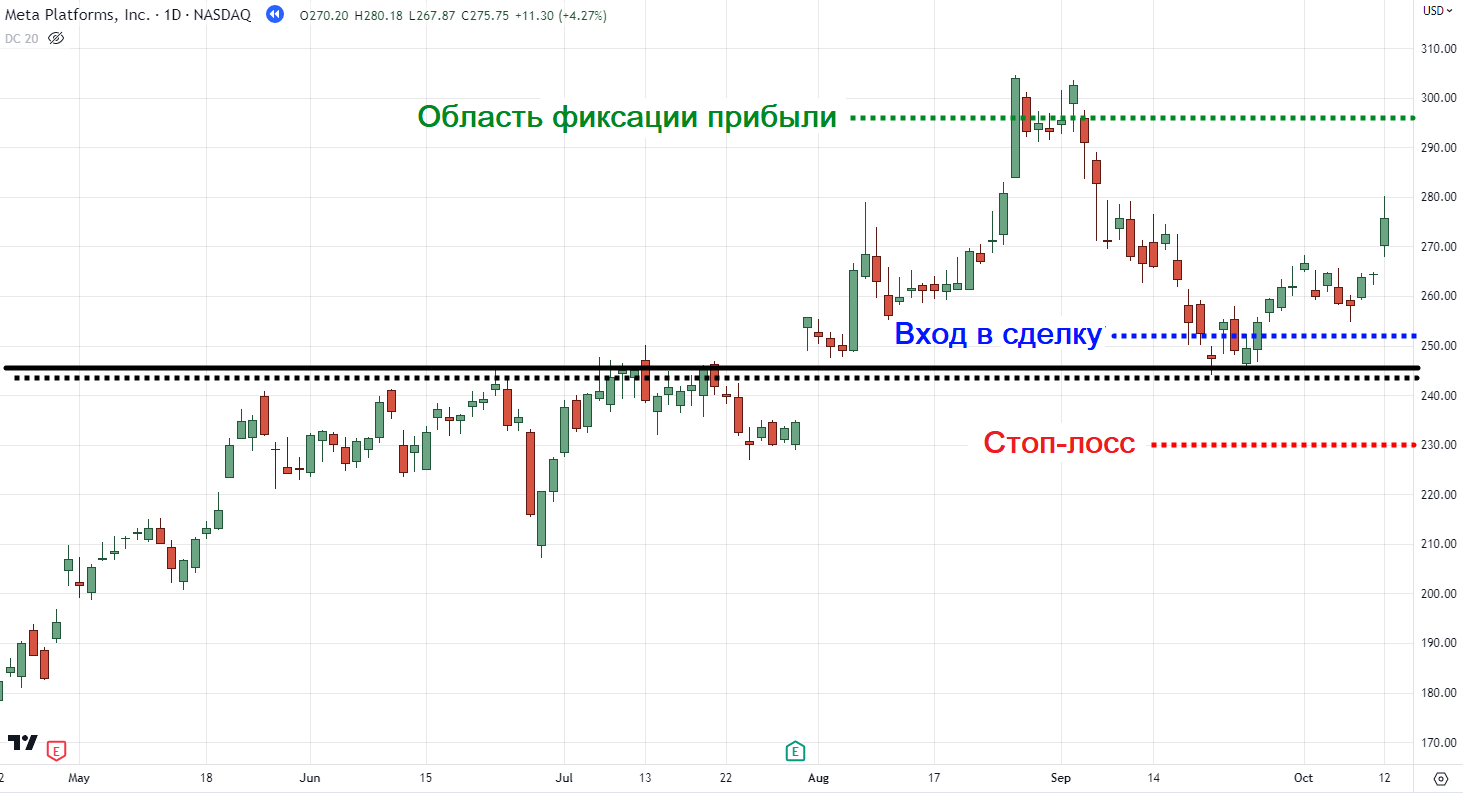 Это означает, что самый выгодный уровень для торговли — это ближайшая область поддержки (или область сопротивления, если акция в нисходящем тренде, и вам нужно открыть короткую позицию). Итак, вы размещаете свой лимитный ордер прямо на этом уровне!