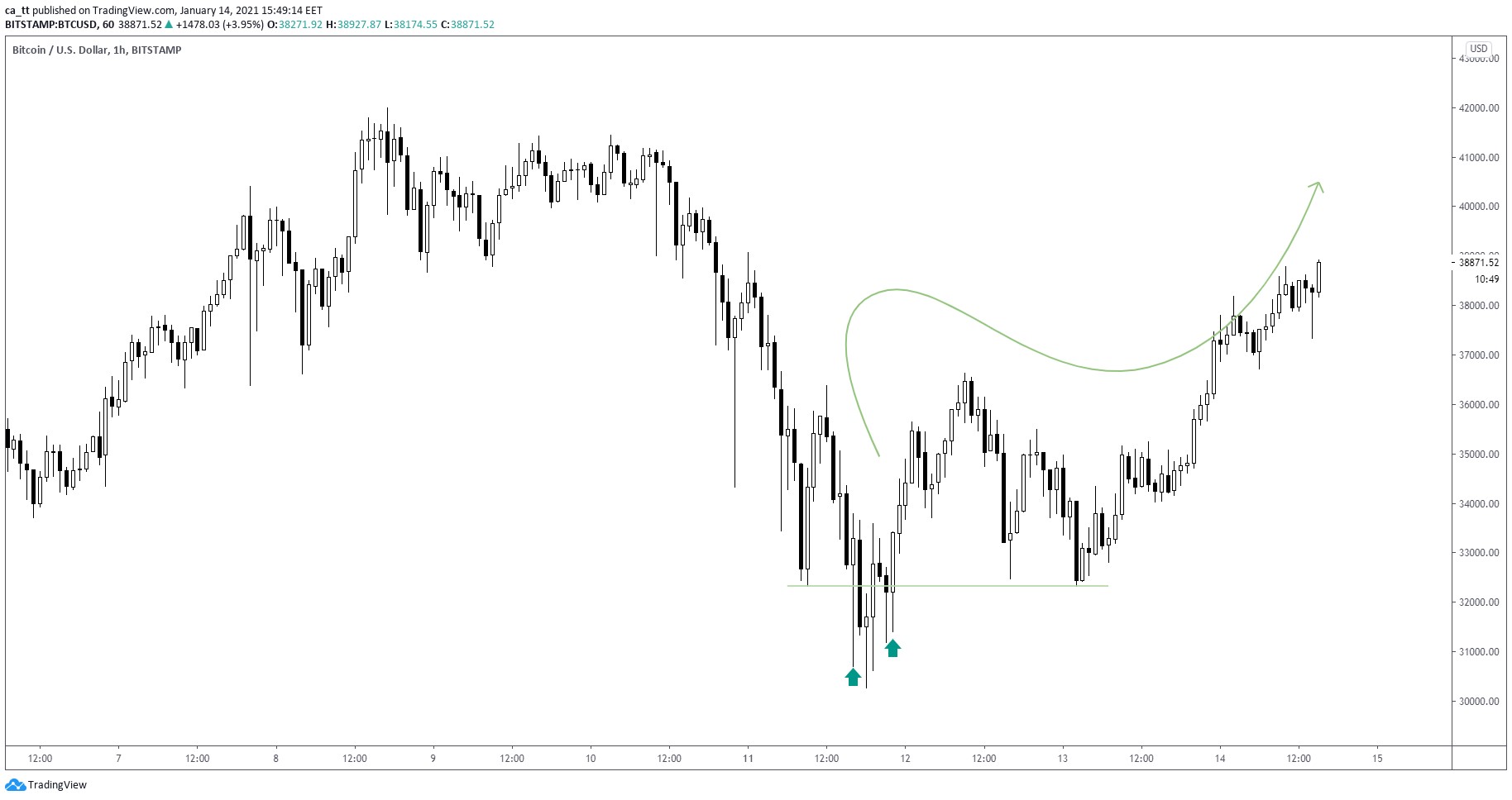 Дошел до $40 000, замедлился и перешел в боковик на часовом таймфрейме. Мы напряглись, перечитали свой план/стратегию, поставили алерты и ждем наш вход: