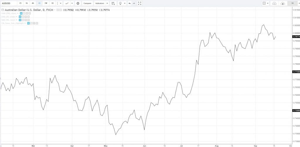 Линейный график котировок AUD/USD