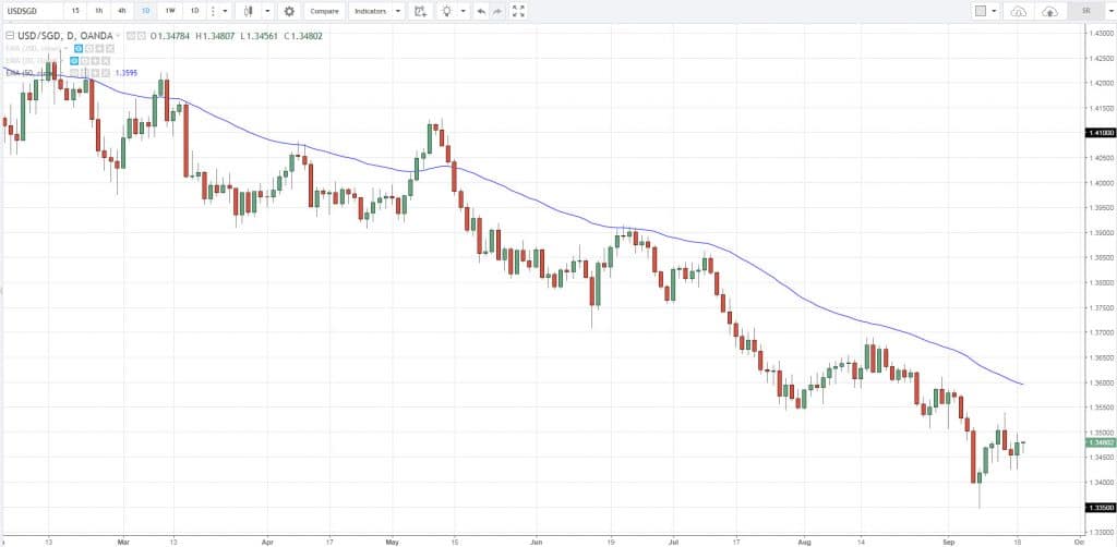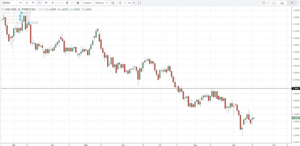 График динамики котировок валютной пары USD/SGD, свечи D1.
