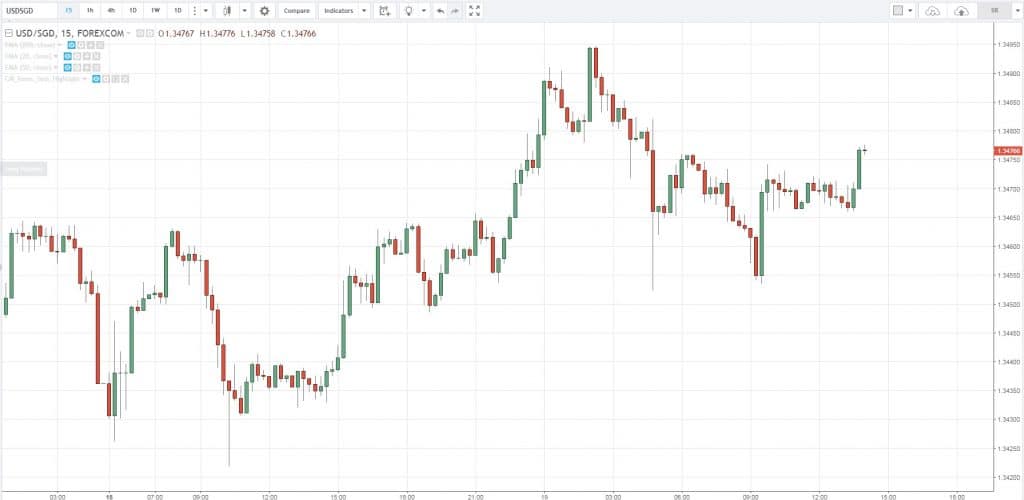 График динамики котировок валютной пары USD/SGD, свечи M15.