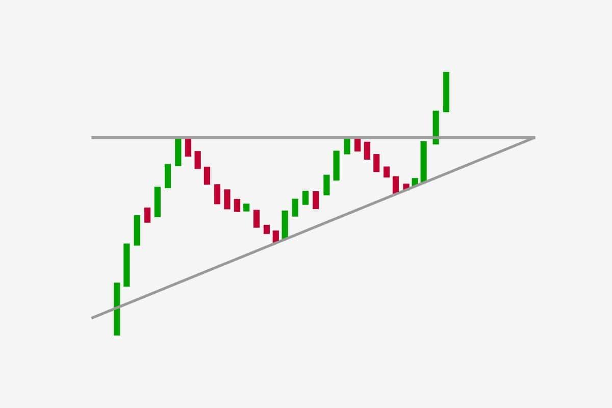 Восходящий треугольник — сигнал растущего рынка на графике, сигнализирующий о скором начале движения вверх.